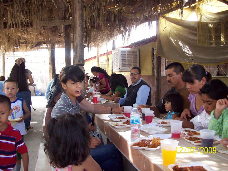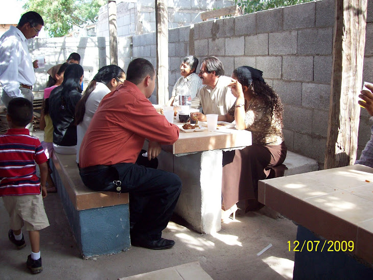 Y se sigue trabajando en la obra del Señor, la cual no para sino antes se amplia ante nuestros ojos. Este 12 de julio (de 2009) estuvimos en un acto solemne, se agrego a la Iglesia, el cuerpo de Cristo una nueva alma, una nueva creatura en Cristo Jesús, fue nuestra vecina que vive a lado de la Iglesia en Cd. Aldama, alma valiente que desde el principio de la construcción coopero con los hijos de Dios. Efectua el bautismo nuestro Hermano Pastor en Cd. Aldama Josue Ortega Beltran. Así mismo despues del bautismo inauguramos la nueva area de comedor junto a la iglesia, esfuerzo de los hermanos.
